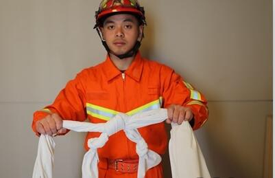 消防隊員表示,這樣給床單打結,不但能最大程度節(jié)約床單的長度,而且打成的結不容易打滑,不會輕易松掉。在逃生時,確保繩結結實不松即可。除了床單之前要打好結外,還要在床單逃生繩上,每隔一小段打一個小結,為了方便逃生。